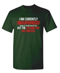 I am currently unsupervised. I know, it freaks me out too. But the possibilities area endless! Funny T-Shirt. The best part is when you pull this shirt over your