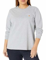 The women’s version of Carhartt classic long-sleeve pocket t-shirt. Same dependable durability, built to fit you. Original fit 6.75-Ounce, 100% cotton jersey rib-knit crewneck and cuffs side-seamed construction minimizes