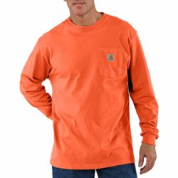 Made of 6.75-ounce, 100% cotton jersey carhartt’s long sleeve pocket t-shirt makes for perfect workwear layered or worn alone. It features a crew neck with a generous left chest