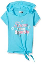 Hooded active short sleeve top with tie waist detail. Product Features Short sleeve Show your sparkle graphic on front Pulls on over head Tie waist detail Soft jersey