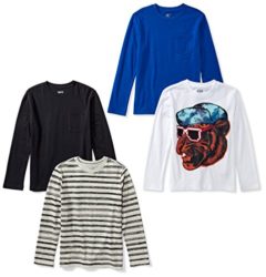 Amazon Brand – Spotted Zebra Boys’ Big Kid 4-Pack Long-Sleeve T-Shirts, Cool Cat, X-Large (12)