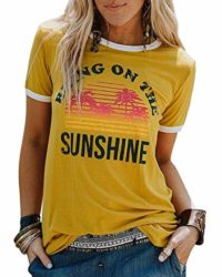 YEXIPO Womens Bring On The Sunshine Casual T-Shirt Letter Printed Loose Graphic Tees Christian Summer Tops Super Soft , Breathable Cotton Basic Tee. Get an Eyecatching Look! Features: Short