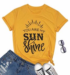 You are My Sunshine T-Shirt Women’s Letter Printed Rainbow Graphic Tees Casual O Neck Short Sleeve Tops Product Features Material: Cotton Blend, Soft and Comfortable To Wear Features: Funny