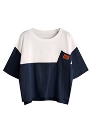 SweatyRocks Women’s Color Block Half Sleeve High Low Casual Loose T-shirt Tops (M, Navy_White)