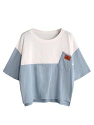 Color Block Slit Side High Low Tee With Chest Pocket Size Chart: One size: Sleeve Length:8.3inch, Bust:44.9-48.8inch, Shoulder:21.7inch, Length:20.9/21.7inch Size Chart_Grey_White#: S:Shoulder:22.0inch,Bust:37.0-40.9inch,Sleeve Length:20.1inch,Length:21.7inch M:Shoulder:22.4inch,Bust:38.6-42.5inch,Sleeve Length:20.5inch,Length:22.0inch L:Shoulder:22.8inch,Bust:40.2-44.1inch,Sleeve Length:20.9inch,Length:22.4inch Product Features