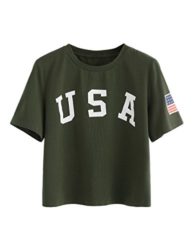 SweatyRocks Women’s Letter Print Crop Tops Summer Short Sleeve T-Shirt (Medium, Green)