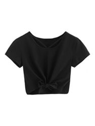 SweatyRocks Women’s Hem Crop Tops T-shirt Casual Short Sleeve Tees Grey One XL