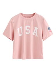 SweatyRocks Women’s Letter Print Crop Tops Summer Short Sleeve T-shirt (Medium, Pink#)