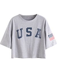 American Flag Letter Print Drop Shoulder Tee Size Chart: S:Shoulder:16.5inch, Length:20.5inch, Sleeve Length:8.3inch, Bust:37.8-41.7inch M/One Size:Shoulder:16.9inch, Length:20.9inch, Sleeve Length:8.7inch, Bust:39.4-43.3inch L:Shoulder:17.3inch, Length:21.3inch, Sleeve Length:9.1inch, Bust:40.0-44.9inch XL:Shoulder:17.7inch, Length:21.7inch, Sleeve Length:9.1inch,