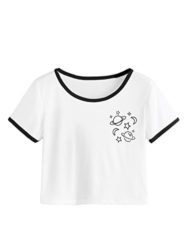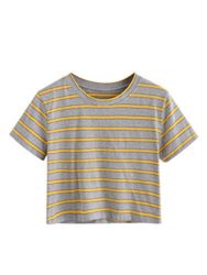 Size Chart_Black: S:Shoulder:14.2inch,Bust:32.3-36.2inch,Sleeve Length:4.7inch,Length:14.2inch. M:Shoulder:14.6inch,Bust:33.9-37.8inch,Sleeve Length:5.1inch,Length:14.6inch. L:Shoulder:15.0inch,Bust:35.4-39.4inch,Sleeve Length:5.5inch,Length:15.0inch. XL:Shoulder:15.4inch,Bust:37.0-40.9inch,Sleeve Length:5.9inch,Length:15.4inch. Product Features Material: Cotton Blends Features:short sleeve t shirt,striped/plain crop top,crewneck shirt top Cute crop top for women,juniors and