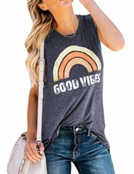 Women’s Tank Tops Graphic Tees Good Vibes Loose Fit Sleeveless Crew Neck T Shirts Tops Great Gift Idea for Mother, Daughter, Wife, Girlfriend, Best Friend, Sister. Pefect wear with jeans or leggings in spring ,summer,fall or winter. Suitable for a casual everyday look.
