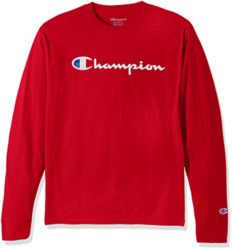 Classic Long-Sleeve Cotton Tee features the same great fit with iconic Champion graphics.All cotton comfort and breathability (Greys are a cotton-rich blend).Ribbed cuffs and collar keep you covered.Matching back