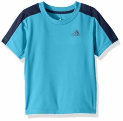 Training top features contrast shoulder/sleeve piecing and heat transfer stripes at center back. Mesh insets on sleeves and under arms allow for ventilation. Heat transfer Adidas brand mark at