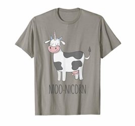 Cows are awesome, unicorns are awesome, what do you get if you cross them though? A moo-nicorn of course! This shirt features a cute cow with a unicorn horn