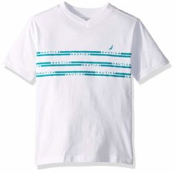 Nautica keeps his style comfortable in a classic v-neck shirt sporting classic Nautica graphics. Product Features Short sleeve V-neck tee shirt Artwork on chest