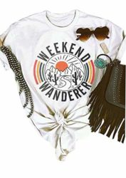 Weekend Wanderer T Shirt Women Funny Rainbow Graphic Tee Teen Girls Summer Casual Short Sleeve Tops Shirts Size S (White)