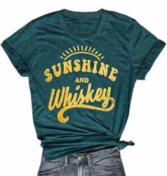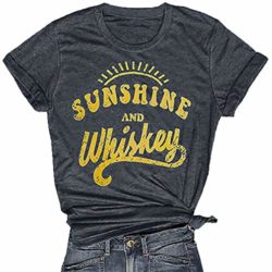 MNLYBABY Women Sunshine And Whiskey T-Shirt Short Sleeve O-Neck Letter Print Tees Tops Blouse Product Details: Material: Cotton Blend,Soft and Comfortable.Hand/Machine Wash Cold Water,Dry Flat,Not Bleach Sunshine And Whiskey