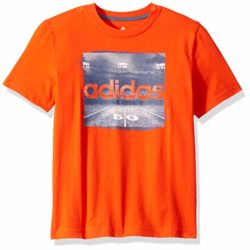 This short sleeve cotton jersey graphic t-shirt from Adidas brings comfort, Quality and value to your active wardrobe. Product Features Screen print features photoreal field and court incorporating core