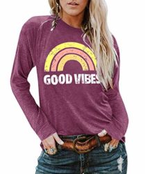 YEXIPO Good Vibes Shirt Womens Short Sleeve Rainbow Print Summer T Shirts Cute Graphic Tees Tops Unique and Chic Style Good Vibes Printing, Super Soft, Breathable Cotton Summer Casual Tee.