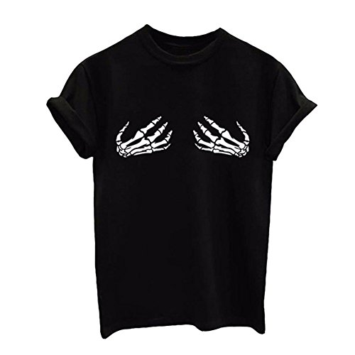 Antopmen Women Skull Finger Printed Pullover Casual Tees T-Shirt Short Sleeve Tops (Medium, Black)