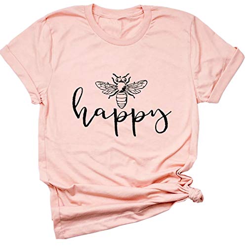 - Womens Be Happy Graphic Tees Casual short Sleeve Round T-Shirts Blouse Tops