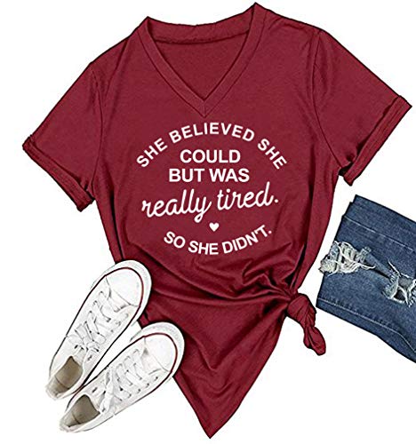 DANVOUY Womens Causal Short Sleeve V-Neck T-Shirt Graphic Tees Wine Red XX-Large