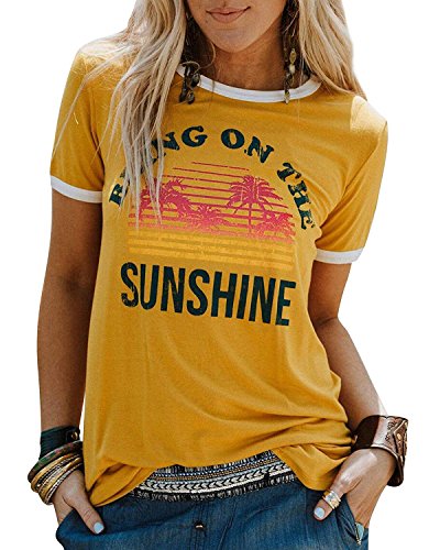 Enmeng Womens Bring On The Sunshine Printed T-Shirt Causal Christian Graphic Tees (M, Colour)