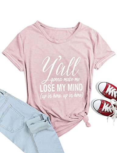 Ezcosplay Women Loose Short Sleeved O neck Letter Print Y’all Gonna Make Me Lose My Mind Cotton T-shirts