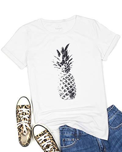 Fuinloth Women’s Graphic Tees, Short Sleeve Crewneck Cute T-Shirts, Printed Cotton Summer Tops Pineapple White Medium