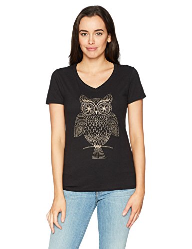 Hanes Women’s Short Sleeve Graphic V-Neck Tee, Whoot Whoot/Black, Large