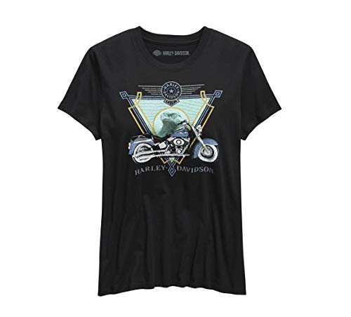 - Official Harley-Davidson throwback graphic short-sleeve tee for women features retro-inspired graphics complemented by a modern silhouette