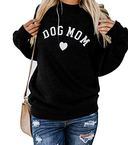 Heymiss Womens Dog Mom Shirt Cat Mom Long Sleeve Crew Neck Letter Print Sweatshirts S-XL