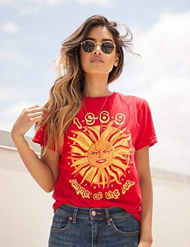 Hylong 1969 Summer of The Sun Graphic T-Shirt Women 70s Vintage Fashion Tee Casual Short Sleeve Shirt Hipsters Red M