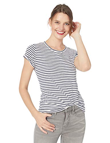 Striped slub cotton jersey t-shirt with crew neckline, short sleeves, and straight hem