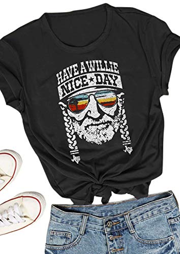 - (ノ゚∀゚)ノ ❤ Package included:1*Have a Willie Nice Day Letter Print Graphic T-Shirt Short Sleeve Sunset Shades O-Neck Casual Tee Tops