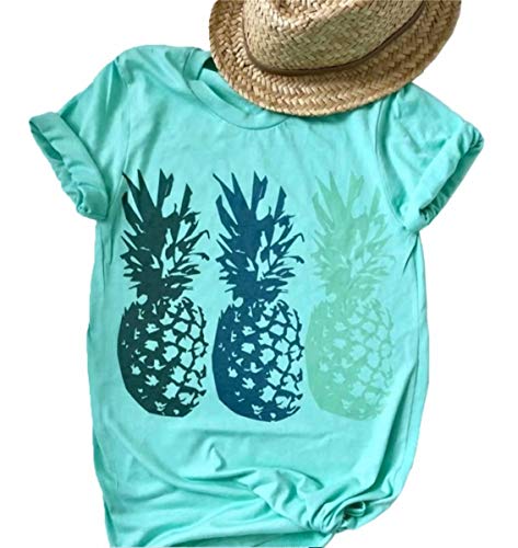 1x Pineapple Print Tee Shirts for Women Summer Casual Short Sleeve Tops
