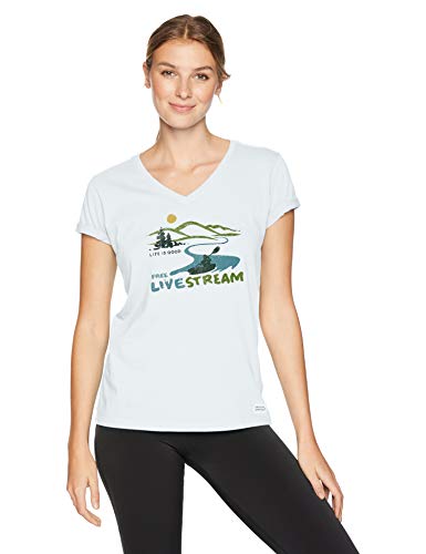 Life is Good Womens Camping Graphic T-Shirt V-Neck Collection,Live Stream,Cloud White,Large