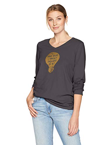 Life is Good Womens V-Neck Long Sleeve Graphic T-Shirt Collection,Ideas,Night Black,Medium