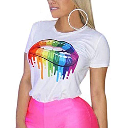 - Feature: Short Sleeve, Crew Neck , rainbow Lips graphic tee shirt