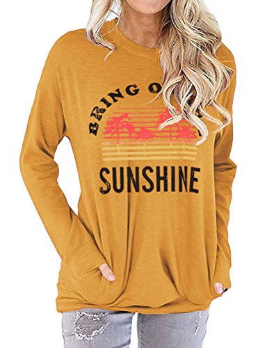 Nlife Casual Bring On The Sunshine Graphic Tees for Womens Tops Tshirts (XXL, X-Yellow)
