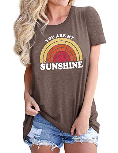 Nlife Women You Are My Sunshine Letter Printed Rainbow Graphic Tee Casual T-shirt Round Neck Short Sleeve Tops