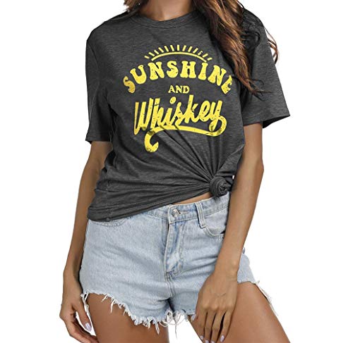 - 【Careful letters print Tops】Sunshine and whiskey vintage tees are machine Washable and hand Washable. The excellent workmanship and printing technique protect the tee from deformation and colour fading. True to colors, crew neck design but not tight, great usual length for comfort, nice loose fit but not see through, whiskey short sleeve permits freedom of movement, but not overly baggy, you’ll love it.