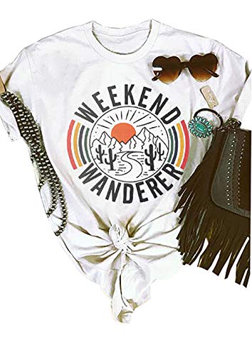 Weekend Wanderer T-Shirt Summer Short Sleeve Rainbow Graphic Tees Tops for Women