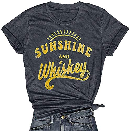 You are My Sunshine T-Shirt Women’s Letter Printed Rainbow Graphic Tees Casual O Neck Short Sleeve Tops Size XL (Dark Gray)